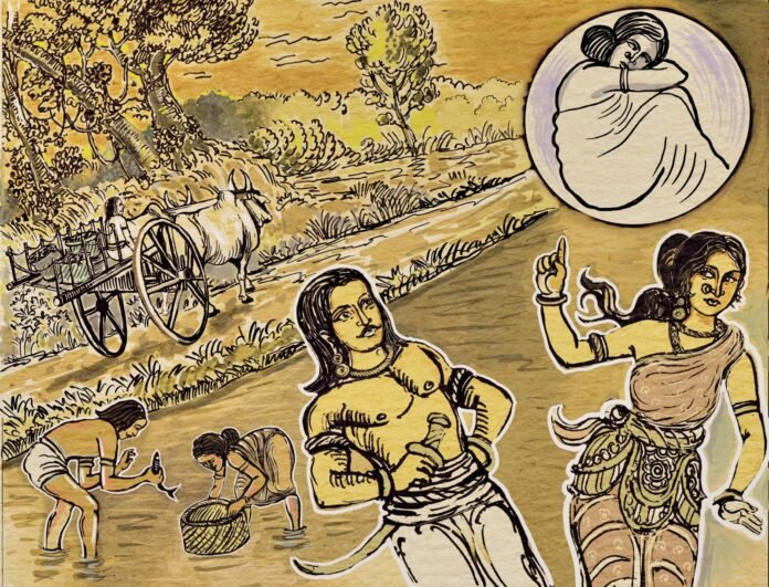 “அறுவடை முடிந்ததும் நிலத்தை மீண்டும் உழுவர், உழவர்.விதைத்தல் முடிந்து இல்லம் திரும்பும்போது விதைத்தலுக்கு விதைகள் நிரப்பி எடுத்து வந்த விதைப்பெட்டிகளில் வயலில் பிடித்த மீன்களை நிரப்பி எடுத்துச் செல்வர். அத்தகைய வளமான மருத நிலத்தின் தலைவனே ! நீ தீரமாக உரைப்பதும் செல்வம் மிகுந்து வாழ்வதும் உன் நற்செயல்களால் விளைந்தது.இருப்பினும் நம்மை அறிந்தவர்களின் இடர்களை இன்சொல் கூறி நீங்க செய்வதே நற்பண்பு என்று சான்றோர் கூற்று ஆகவே தலைவியை தேற்றுவாயாக !”.