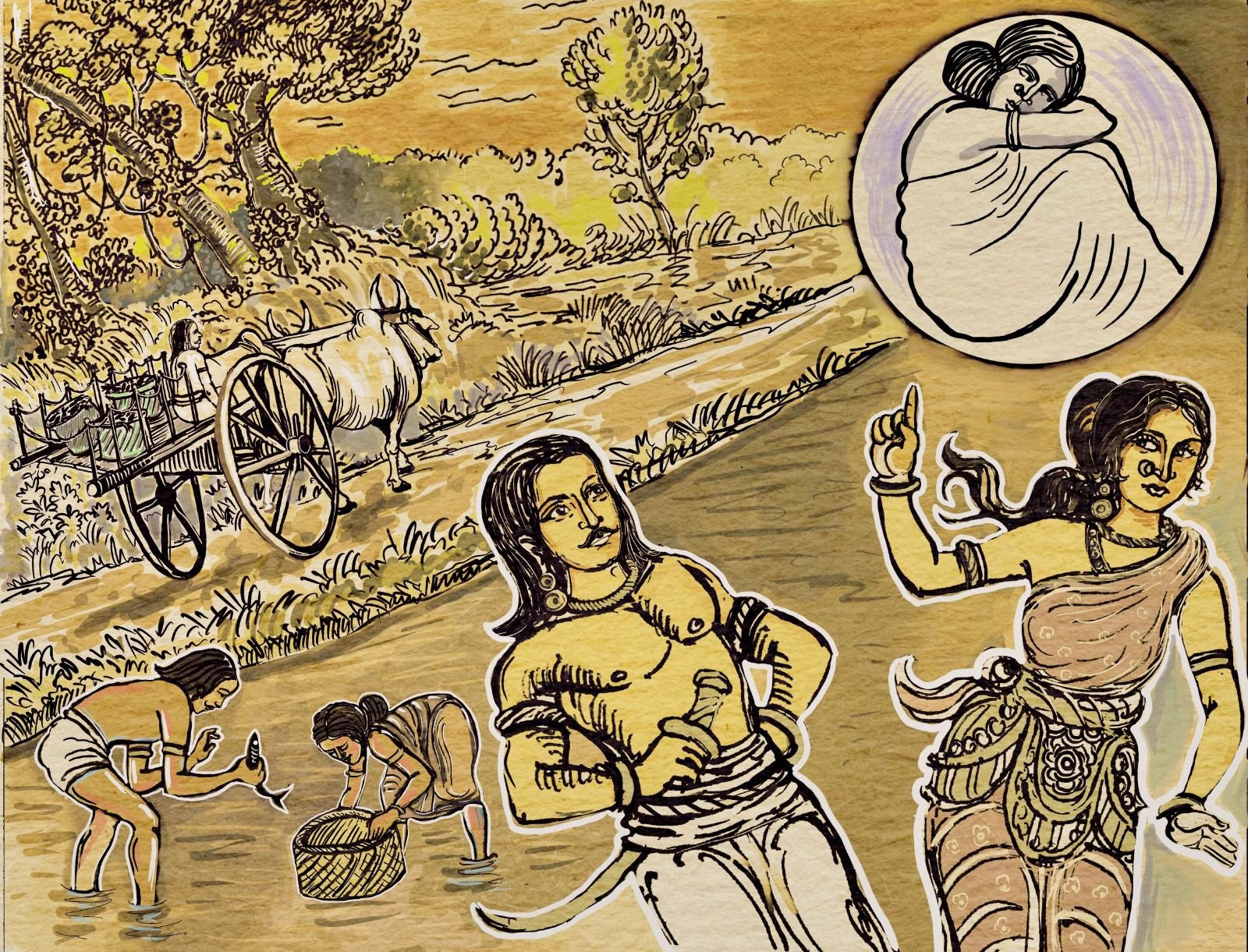 தலைவன் சண்டையிட்டு தலைவியைப் பிரிந்து விடுகிறான்.தோழி தலைவனிடம் சென்று அவளை ஆற்றுப்படுத்த இவ்வாறு வேண்டுகிறாள்: