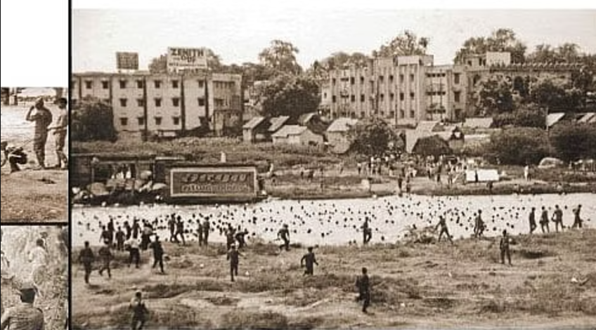 வானத்தைப் பார்த்தவாறு இரு முறை துப்பாக்கியால் சுட்டனர். துப்பாக்கிச் சத்தத்தைக் கேட்டு அச்சமடைந்த மக்கள் தாமிரபரணி ஆற்றைக் கடந்து தப்பிக்க முயன்றனர். அப்போதும் மிருகத்தனம் கொண்ட காவலர்கள் அவர்களைத் தண்ணிருக்குள் மூழ்கடித்துக் கொலை செய்தனர்.