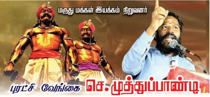 பள்ளங்களும் மேடுகளும் மாறிமாறி வரும் இப்பூமியைப் பசுமையாக்க ஓடும் ஆறு, தனக்கான பாதையை உருவாக்கி, தான் பயணிக்கும் வழியெங்கும் உயிர்கள் பயன்பெறும் வகையில் ஓடிக்கொண்டிருக்கிறது. அதுபோல தனக்கென ஒரு பாதையை உருவாக்கிக் கொண்டு, அப்பயணத்தில் தமிழ் மண்ணுக்கும் தமிழ் மக்களுக்கும் தன்னால் இயன்றதைச் செய்ய வேண்டும்; தமிழ்த் தேசியம் வெல்ல வேண்டும் என்ற கொள்கைப் பிடிப்போடு களத்திலே முழங்குபவர் தான் மருது மக்கள் இயக்க நிறுவனர், புரட்சி வேங்கை செ.முத்துப்பாண்டி அவர்கள்.