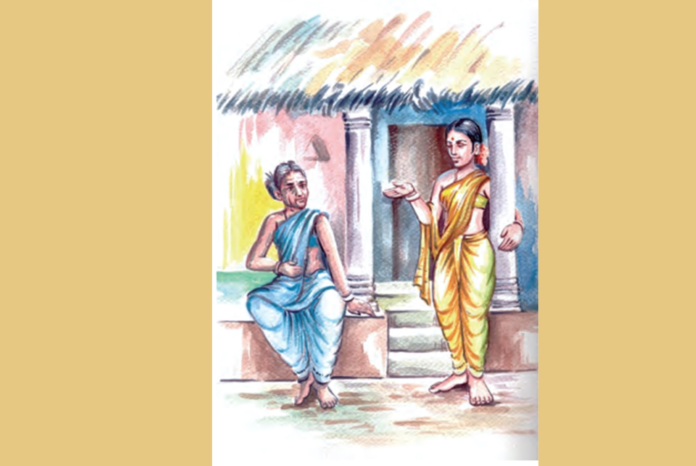 சிறிய வீட்டின் நல்ல தூணைப் பிடித்துக்கொண்டு, “உன் மகன் எங்கே உள்ளான்?” என்று கேட்கிறாய். புலி தங்கிச் சென்ற குகையைப் போல் அவனைப் பெற்ற வயிறு இங்கிருக்க, என் மகன் எங்கிருக்கிறான் என்பதை நான் அறியேன். அவன் போர்க்களத்தில் தோன்றுவான். அங்கு போய்ப் பார்!” என காவற்பெண்டு சொல்வதாக இப்பாடல் அமைந்துள்ளது.