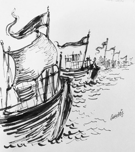 குற்றமற்ற சிறப்பினையுடைய தெய்வங்கள் உள்ள, மலர்கள் பொருந்த அமையப்பெற்ற இடங்களின் வாயிலில், பலரும் தொழும் கொடிகளும், சந்தனத்தால் மெழுகிய தரையில், கூழ் நிரம்ப வைக்கப்பட்டுள்ள கூடையும், கீழே விரிக்கப்பட்ட துணியின் மீது உள்ள பல்வேறு பண்டங்களும், அரிசியும் மலர்களும் பலியாகச் சிதற, மெழுகிய தரையில் வேல் ஊன்றிக் கேடயங்கள் கவிழ்த்து வைக்கப்பட்டு , காட்டாற்று வெள்ளத்தில் வந்து சேர்ந்த வெண்மையான மணலில் முளைத்த கரும்பின் மலர்களைப் போன்ற துணியால் செய்த கூரையின் மீது நட்டுள்ள வீரமரணம் அடைந்த வீரர்களுக்கான துகில் கொடிகளும், பல நூல்களைக் கற்ற சான்றோர்களின் அறமன்றத்தில் உள்ள கொடிகளும், தறியில் வரிசையாக கட்டப்பட்ட களிறுகள் தறியை அசைப்பது போன்று துறைமுகத்தில் நெருக்கமாக நிற்கும் படகுகளில் அசையும் பல்வேறு கொடிகளும் புகார் நகரில் இருந்தன.