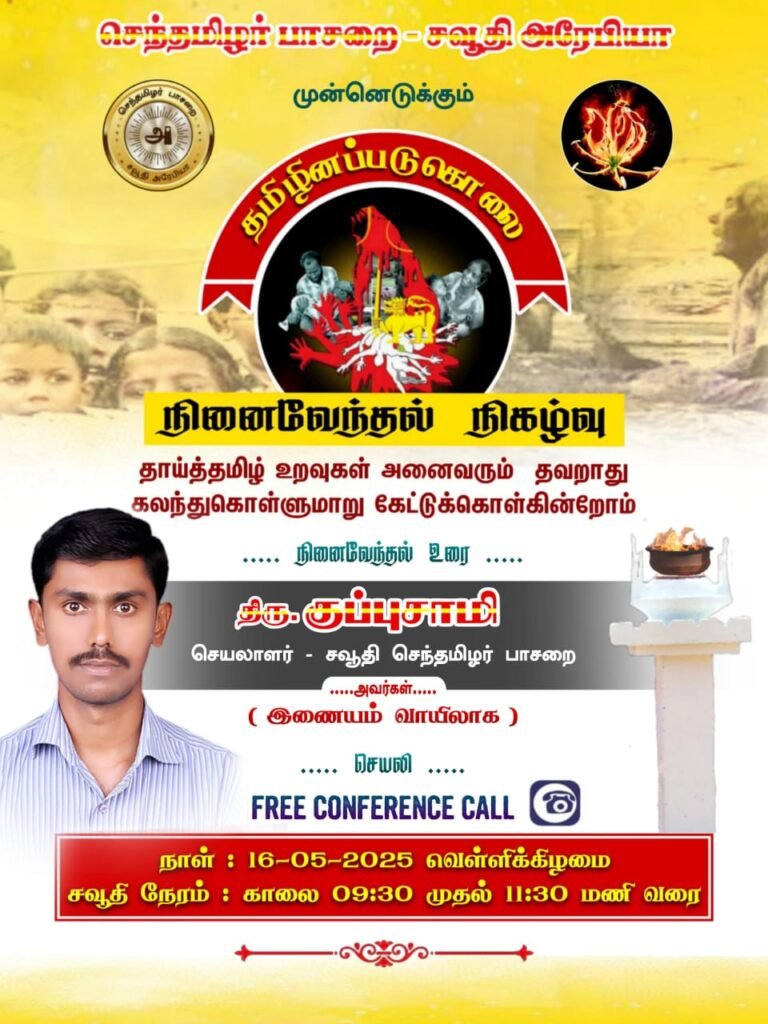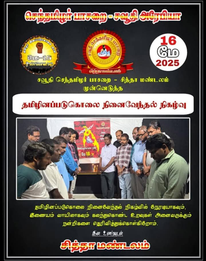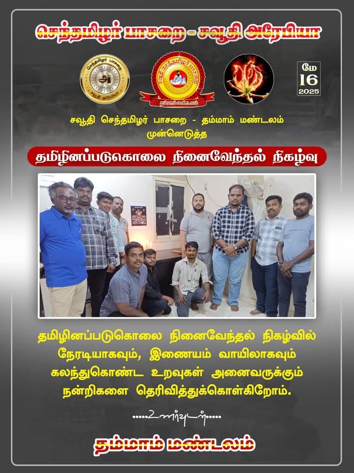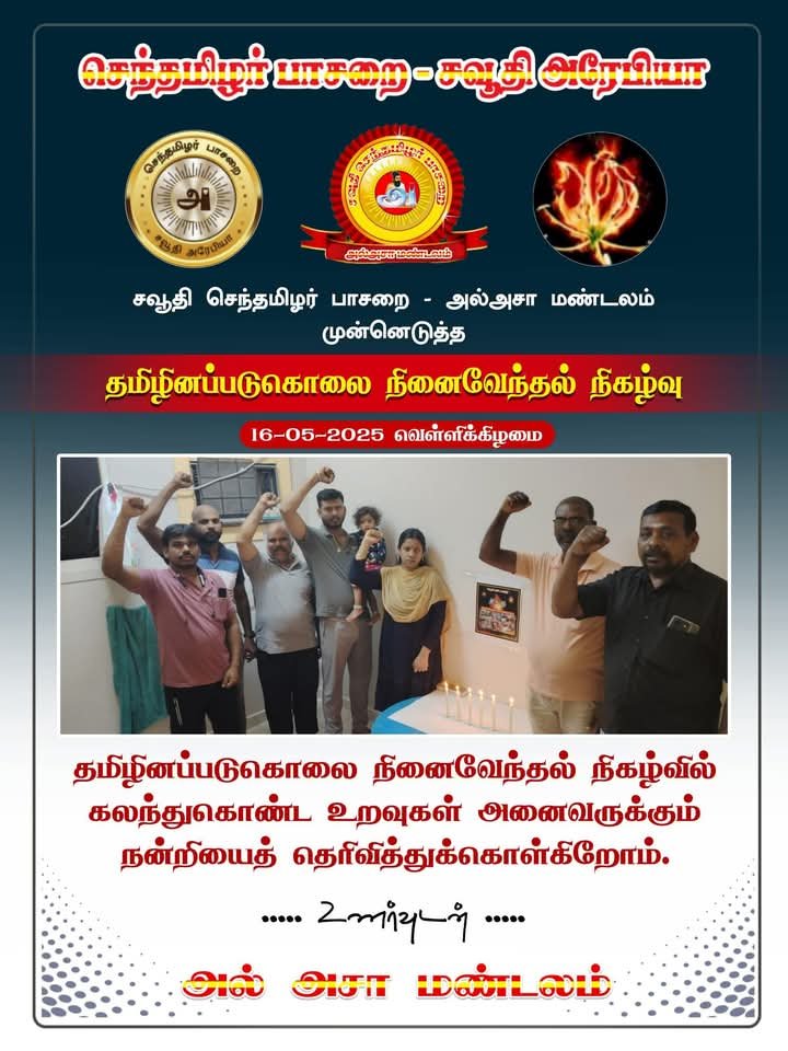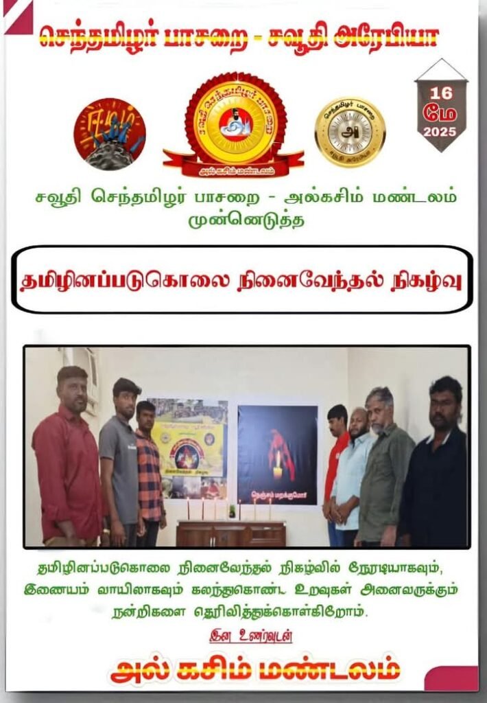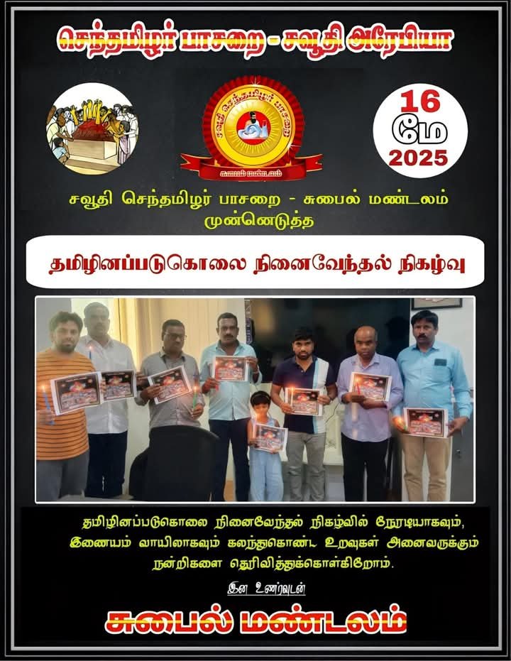 2025 மே 18 இன எழுச்சி நாளை முன்னிட்டு செந்தமிழர் பாசறை பக்ரைன் சார்பாக நினைவேந்தல் நிகழ்வு நடைபெற்றது.