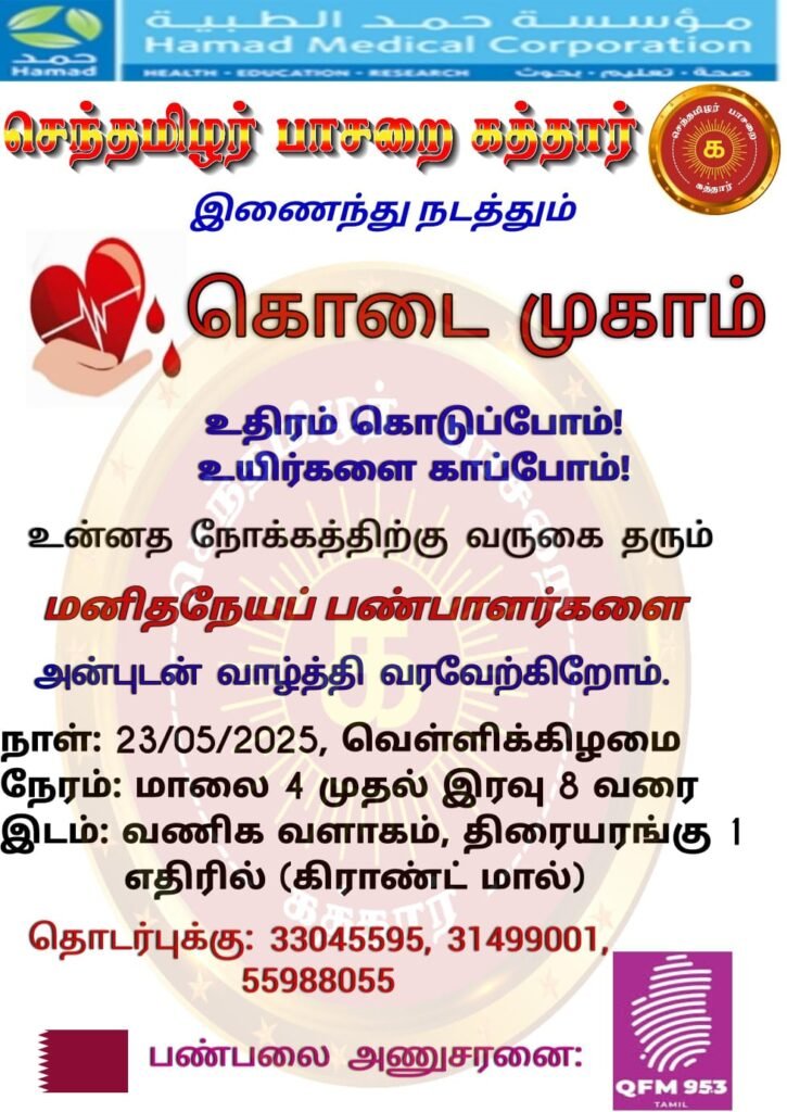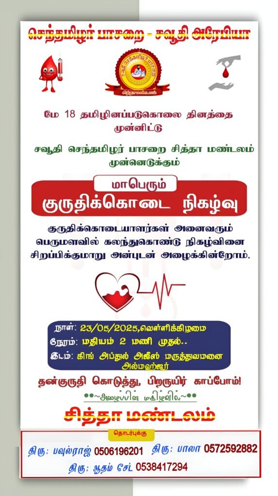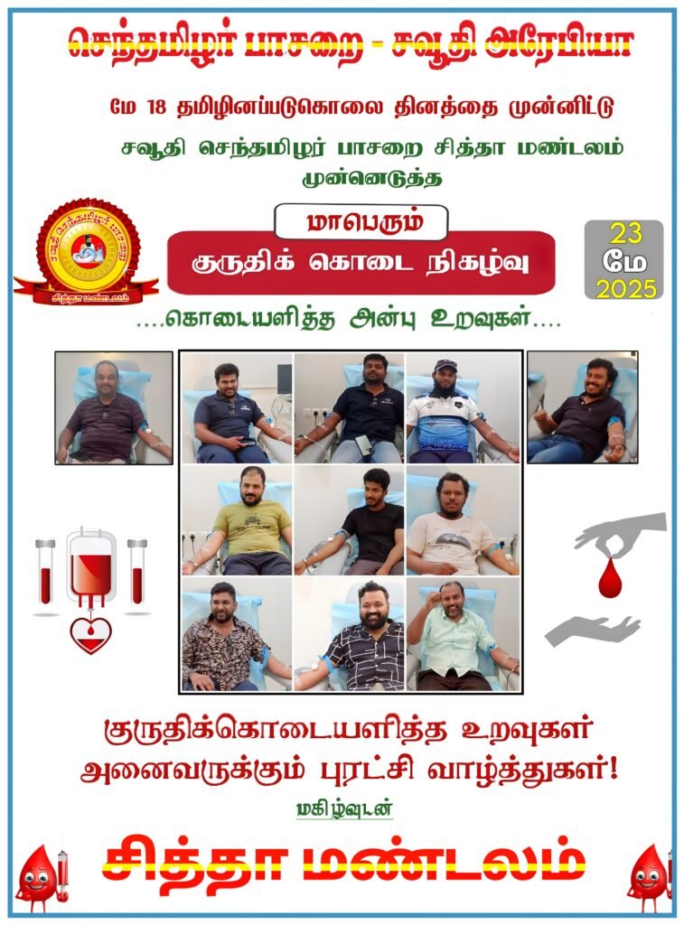 மே18 இன எழுச்சி நாளை முன்னிட்டு செந்தமிழர் பாசறை கத்தார் சார்பாக 23/05/2025 அன்று நடத்தப்பட்ட குருதிக்கொடை முகாமில் 101 உறவுகள் கடந்து கலந்து கொண்டு 75 அலகுகள் குருதி கொடையாக வழங்கினர்.